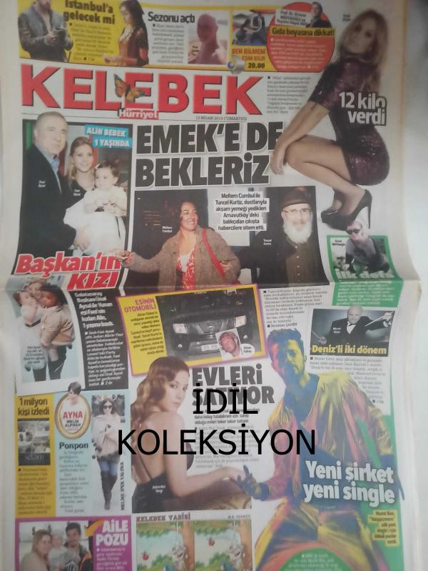 Kelebek Magazin Gazetesi - 13 Nisan 2003 - İlhan Şeşen - Osman Müftüoğlu - Petek Dinçöz - Ünal Aysal - Fani Aysal - Meltem Cumbul - Tuncel Kurtiz - Emel Müftüoğlu - Alican Özbaş - Murat Yeter - Melike İpek Yalova - Aşkın Nur Yengi - Aydın Yılmaz - Murat Boz - Gökhan Kimsesizcan - Selin Denizli - Cem Mırap - Cengiz Semercioğlu - Elvir Baliç - Michael Skibbe - Meyra - Osman Müftüoğlu - Esin Över - Savaş Özbey - Nilgün Belgün - Yohana Vaca Guzman - Zara - Arto - Chloe Ortaç - Onur Baştürk - Murat Yeter - David Goyer - Lara Pulver - Güzin Abla - Mekik Çekme Oyunu Erkekleri Zorluyor - Elveri Satıyor - Yeni Şirket Yeni Single - Hamama Gidip Terliyecekler - Kapak Kızı Olmak İster Misiniz? fotoğraf ve haberi - Tam Takım Dergi Yıpranma, sararmalar, kupon kesiği ve yırtılmalar zamana bağlı olarak görülebilir
