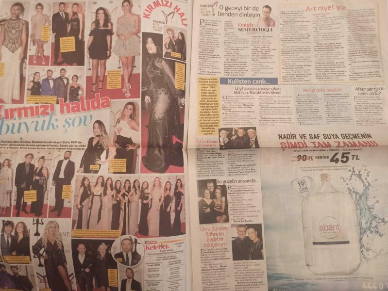 Kelebek Magazin Gazetesi - 15 Kasım 2016 - Sibel Can - Aydın Doğan - Hande Fırat - Tarkan - İrem Derici - Dilan Çiçek Deniz - Simge Sağın - Okan Bayülgen - Pelin Akil Altan - Demet Akalın - Kaan Cüreklibatur- Cüneyt Arkın - Ataberk Mutlu - Berem Gökyıldız - Doğukan Manço - Cenk Eren - Sema Çelebi - Türkan Şoray - Meryem Üzerli - Umut Akyürek - Cengiz Semercioğlu - Ebru Gündeş - Amine Gülşe - Ceren Benderlioğlu - Gül Ergi - Fatih Ürek - Esra Sönmezer - Seçkin Piriler - Ahu Yağtu - Güney Musayeva - Erkan Özerman - Cumali Özkaya - Müjdat Gezen - Selami Şahin - Furkan Andıç - Beren Gökyıldız - Hande Yener - Nazlı Çelik - MFÖ - Fatik Portakal - Barış Arduç - Müge Anlı - Beyazıt Öztürk - Hande Fırat - Ayla Çelik - Tarkan - Beyazıt Öztürk fotoğraf ve haberi - Tam Takım Gazete Yıpranma, sararmalar, kupon kesiği ve yırtılmalar zamana bağlı olarak görülebilir