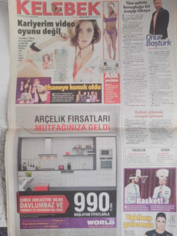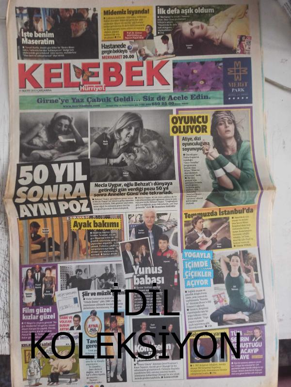 Kelebek Magazin Gazetesi - 15 Mayıs 2013 - Tuncel Kurtiz - Yasemin Allen - Atiye - Behzat Uygur - Necla Uygur - 50 Yıl Sonra Aynı Poz - Jason Mraz - Elif Sönmez - Onur Baştürk - İbrahim Toraman - Serdar Gökhan - Alperen - Vedat Sakman - Arzu Yanardağ - Pascal Nouma - Yasemin Öztürk - Nilgün Belgün - Sibel, Minel Karakaşlı - Feruh Karakaşlı - Erkin Ersoy - Hülya KAlyoncu - Ferruh Karakaşlı - Arzu Sabancı - Emel Acar - Gökhan Kimsesizcan - Cengiz Semercioğlu - Hüseyin Avni Mutlu - İbrahim Şahin - Aşkın Nur Yengi - Al iBiçim - Rıza Kocaoğlu - Ebru Şallı Farid Mammadov - Osman Müftüoğlu - Bülent Ersoy - Selami Şahin - Serdar Ortaç - Güzin Abla - Melike Karakartal - Eva Longoria - Jimmy Fallon - Bradley Cooper - Rebbeca Hall - Wladimir Kitschko - Onur Baştürk fotoğraf ve haberi - Tam Takım Gazete Yıpranma, sararmalar, kupon kesiği ve yırtılmalar zamana bağlı olarak görülebilir