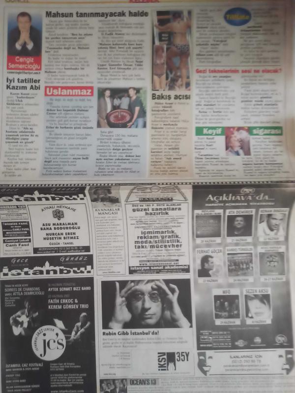 Kelebek Magazin Gazetesi - 19 Haziran 2007 - Mustafa Sandal - Emina Sandal - Ziya Azazi - Halit Ergenç - Bergüzar Korel - Ceylan Pirinçcioğlu - Zuhal Kırmış - Jeff Hakko - Hülya Avşar - Tolga Gariboğlu - Kubilay Keskin - Nur Yerlitaş - Meyra - Selin Fadıllıoğlu - Melisa Eliyeşil - Afet Karacan - Irmak Atuk - Okan Karacan - Pashan Yılmazel - Alp Kırşan - Aysun Kayacı - Tolga Gariboğlu - Sinem Vural - Ömür Gedik - Osman Müftüoğlu - Cengiz Semercioğlu - Renkli Gözlülerin Dizisi Tatile Giriyor- Burcu Kara - Sinan Sümer - Ece Uslu - Gökhan Tepe - Güzin Abla - Bakire Olmadığımı Öğrenince Beni Bıraktı - Elbisem Kanatlarımın Altında -Jessica Alba - İstanbul'da Aşk Tazeledik - Kurt Russell - Reha Erus fotoğraf ve haberi - Tam Takım Gazete Yıpranma, sararmalar, kupon kesiği ve yırtılmalar zamana bağlı olarak görülebilir