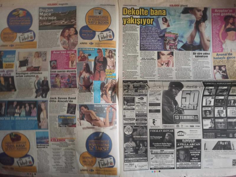 Kelebek Magazin Gazetesi - 2 Temmuz 2009 - Azra Akın - Osman Müftüoğlu - Tuğba Özerk - İbrahim Tatlıses - Sema Eren - Sami Soydan - Tuba Büyüküstün - Keremcem - Bendeniz - Alp Kırşan - Sarah Jessica Parker - Matthew Broderick - Selen Görgüzel - İvana Sert - Jack Seven Band - Nuray Fenercioğlu - İsmail Acar - Okan Bayülgen - Demet Sabancı Çetindoğan - Zeynep Garan - Hüsnü Özyeğin - Ece Gürsel - Emre Karabacak - Kubilay Keskin - Ebru Polat - Osman Müftüoğlu - Melike Karakartal - Azra Akın - Michael Jackson - Ana Ortiz - Britney Spears - Ömür Gedik - Hilary Duff - Mariah Carey - Madonna fotoğraf ve haberi - Tam Takım Gazete Yıpranma, sararmalar, kupon kesiği ve yırtılmalar zamana bağlı olarak görülebilir