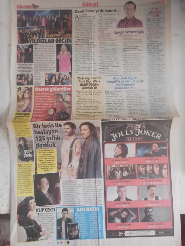 Kelebek Magazin Gazetesi - 23 Aralık 2015 - Hazal Filiz Küçüköse - Hande doğandemir - Şahan Gökbakar - Quentin Tarantino - Samuel L. Jackson - Osman Müftüoğlu - Özge Ulusoy - Murat Başoğlu - Cüneyt Arkın - Filiz Akın - Betül Demir - Yüksel Ak - Pınar Tezcan - Ediz Hun - Türkan Şoray - Zara - Şirin Ediger - Başak Dizer - Didem Soydan - Eliz Sakuçoğlu - Duygu Kaya Kumarki - İsmail Hacıoğlu - Meryem Uzerli - Fulya Gündoğdu - Nuşin Oral - Füsun Kuran - Ayşe Dolga - Eliz Sakuçoğlu - Didem Soydan - Gökhan Kimsesizcan - Zeynep Fadıllıoğlu - Nebahat Çehre - Cengiz Semercioğlu - Melis Danışmend - Censel Elçin - Güzin Abla - Osman Müftüoğlu - Kalsiyum mu Magnezyum mu - Bunlara Dikkat Edin fotoğraf ve haberi - Tam Takım Gazete Yıpranma, sararmalar, kupon kesiği ve yırtılmalar zamana bağlı olarak görülebilir