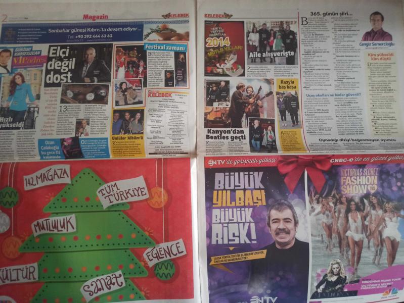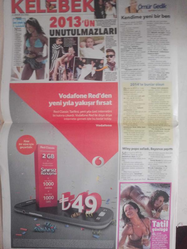 Kelebek Magazin Gazetesi - 31 Aralık 2013 - İzzet Çapa - Yasemin Ellen - Sibel Tüzün - Mustafa Topaloğlu - Mesut Yar - Tolga Çevik - Mustafa Sandal - Cem Yılmaz - Ali Şen - Gökhan Özoğuz - Zeynep Çamcı - Burcu Biricik - Bala Atabek - Selen Uçer - Selçuk Yöntem - Bülent Ersoy - Sibel Can - Orhan Gencebay - Gökhan Kimsesizcan - Zinedine Zidane - İsmail Ünal - Ozan Çolakoğlu - Aydan Şener - Sibel İlkiz - Cengiz Semercioğlu - Ece Erken - Polat Yağcı - Recep Tayyip Erdoğan - Ümit Karan - Petek Dinçöz - İzzet Çapa - İbrahim Büyükak - Eser Yenerler - Oğuzhan Koç - Athena - Murat Boz - Hadise - Hülya Avşar - Taylor Swift - Selçuk Yöntem - Mesut Yar - Kenan Işık - Yeşim Salkım - Hakan Eratik - Alişan - Bekir Aksoy - Ayşe Çavuşoğlu - Melike Karakartal - Güzin Abla - Naomi Campbell - Miley Cyrus - Justin Bieber - Kim Kardashian - Kanye West - Ömür Gedik fotoğraf ve haberi - Tam Takım Gazete Yıpranma, sararmalar, kupon kesiği ve yırtılmalar zamana bağlı olarak görülebilir