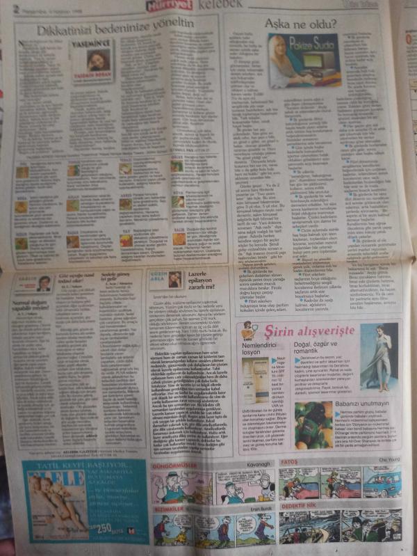 Kelebek Magazin Gazetesi - 4 Haziran 1998 - Aşka Neler Oluyor? - Nilüfer - Anılar Unutulmaz - Yasemin Boran - Pakize Suda - Aşka ne oldu? - Dikkatinizi bedeninize yöneltin - Şirin Alışverişte - Güzin Abla - Lazerde Epilasyon Zararlı mı? - Gündüz Tezmen - Güngörmüşler (Kavanagh) - Fatoş (Chic Young) - Dedektif Nik - Bizimkiler (Ersin Burak) Çizgi Romanları - Antibiyotik Kullanırken Dikkat - Zor Hedef - Derin Darbe - Ankara Rüzgarı - İbo'nun Konukları fotoğraf ve haberi - Tam Takım Gazete Yıpranma, sararmalar, kupon kesiği ve yırtılmalar zamana bağlı olarak görülebilir
