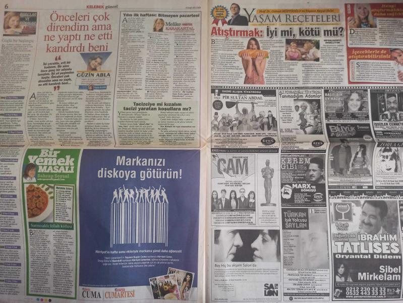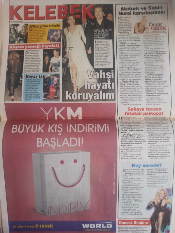 Kelebek Magazin Gazetesi - 4 Ocak 2011 - Sibel Mirkelam - Hülya Avşar - Erdal Özyağcılar - Zeynep Özyağcılar - Güzin Özyağcılar - İlker İnanoğlu - Zafer Ergin - Gülşen - Adile Naşit - Levent Kazak - Justin Bieber - Selena Gomez - Ayça İnci - Abdullah Burnaz - Selin Denizli - Melis Alphan - Çolpan İlhan - Kemal Sunal - Adile Naşit - Türker İnanoğlu - Ediz Hun - Suzan Avcı - Kayhan Yıldızoğlu - Berna Yılmaz - Gökhan Kimsesizcan - Melis Alphan - Deniz Akkaya - Cansu Dere - Didem Erol - Nur Aysan - Nehir Erdoğan - Şafak Sezer - Cengiz Semercioğlu - Tuna Kiremitçi - Kayahan - Osman Müftüoğlu - Angelina Jolie - Brad Pitt - Chris O'Donnell - Josh Duhamel - Miley Cyrus fotoğraf ve haberi - Tam Takım Gazete Yıpranma, sararmalar, kupon kesiği ve yırtılmalar zamana bağlı olarak görülebilir