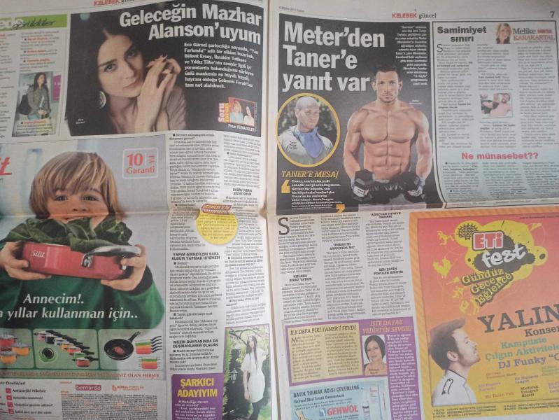 Kelebek Magazin Gazetesi - 6 Mayıs 2011 - Kris Humphries - Kim Kardashian - Ece Gürsel - Ajda Pekkan - Diana Kruger - Joshua Jackson - Hadise - Osman Müftüoğlu - Sibel Tüzün - Elaya - Meter Mevsimler - Taner Tolga Tarlacı - Rahmeli Soyer - İbrahim Toraman - Nilüfer - Şebnem Ferah - Lewis Hamilton - Serpil Timuray - Çiğdem Kayalı - Melis Alphan - Eylül Deniz - Nil Karaibrahimgil - Esin Moralıoğlu - Sinem Yıldırım - Rüştü Reçber - Cem Hakko - Cengiz Semercioğlu - Melis Alphan - Tuna Kiremitçi - Elif Şafak - Ece Gürsel - İbrahim Tatlıses - Yıldız Tilbe - Melike Karakartal - Johnny Depp - Sibel Tüzün - Hülya Avşar - Gökhan Özen - Ayşe Yüksel - Türkan Saylan - Esra Sönmezer - Yonca Tokbaş - Burcu Güneş - Betül Demir - Sezen Aksu - Osman Müftüoğlu - Güzin Abla - Tekin Acar - Madonna - Onur Baştürk - Karolyn Pho - Shia LeBeout - Rihanna - Natalie Portman - LeAnn Rilmes - Katy Perry - Jennifer Lopez fotoğraf ve haberi - Tam Takım Gazete Yıpranma, sararmalar, kupon kesiği ve yırtılmalar zamana bağlı olarak görülebilir