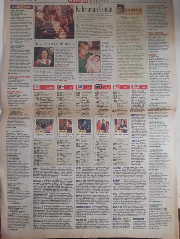 Kelebek Magazin Gazetesi - 9 Eylül 1998 - Bayanlar Sağlığa Koşacak - Yeryüzünün Melekleri - Kutunun İçindeki Kız - Sevimli Fareler - Bebek Fotoğraflarının Kraliçsi - Uyuan Melekler - 7 Aylık Lahanalar - Balkabağını Sevdi - Gülden Gıdıklanıyor - Kanat Atkaya - Harekette Bereket Tartışması - Erkekler Neden Öfkelenir? - Aykkabı Tasarım Yarışması - Güzin Abla- Acaba başka biri mi var? - Gündüz Tezmen - Güngörmüşler (Kavanagh) - Fatoş (Chic Young) - Dedektif Nik - Bizimkiler (Ersin Burak) Çizgi Romanları - Vitrinleri Giydiriyor- 10 Dakikada Stresten Kurtulun - Selim Akçin - İkizlerin Ayrı Dünyası - Kahraman Conan - Kara Melek'le Yeniden fotoğraf ve haberi - Tam Takım Gazete Yıpranma, sararmalar, kupon kesiği ve yırtılmalar zamana bağlı olarak görülebilir