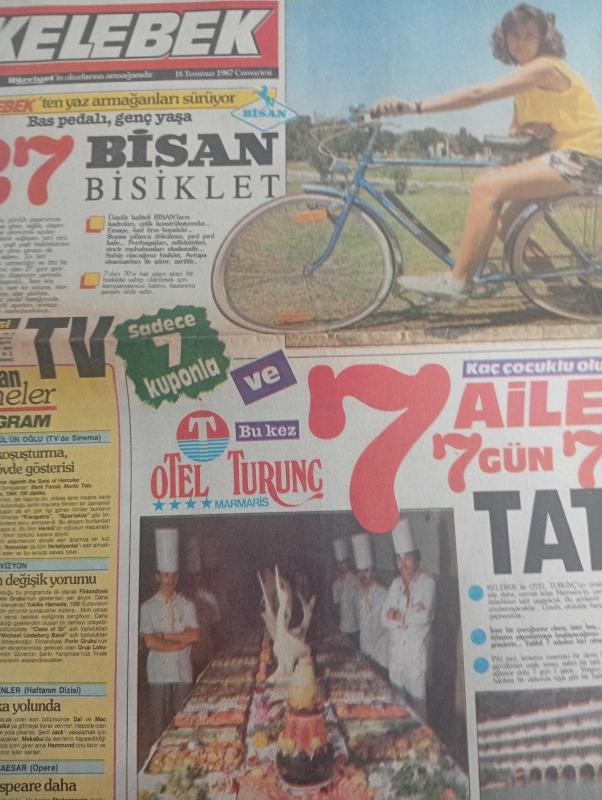 Kelebek hürriyet Gazetesi -18 temmuz 1987 - Bas pedal genç yaşa-Herkül’ün filmi-iz sürenler dizisi-yedi aileye yedi gün yedi gece tatil otel turunç-Bizimkiler karikatürü-copyrıght-güngörmüşler karikatürü-kavanagh-dedektif nik karikatürü-Şato-Fatoş karikatürü-chıcyoung-alpago-Metin soysal-filret kol-günün adamı-Ali Poyrazoğlu-mokok-Memo-mesut çakarlı-didem bülbül-nevzat takmaz-ersin burak-kelebek falınız-azize bergin-yavrumu kurtarın foto-Hülya Birben-Yılmaz Zafer-müge yamaç-Nuri alço-eşref kolçak-köydeki yabancı-diplomayı rafa kaldırmadık-Tülay arda ceylan-Merve İldeniz-Neşe Erberk-magnum ve arkadaşları çocuk bakıyor-üç erkek ve bir bebek-. Nasrettin-Ali Akgül-Abdullah Şahin-Zerrin Sümer-gönülden gonule foto romanı-Ahmet Özhan-Sibel turnagöl-Sümer Tilmaç-Nilgün Ersoy-Bennu Yıldırım-Halit kurtoğlu-Şemsi İnkaya-Fulden Uras-nevin Aypar-agah Hun-Burak Öge-efecan-sayfa sayısı dört adlı eser, Kitap > Süreli Yayınlar > Gazeteler kategorisinde İkinci El olarak satıştadır.