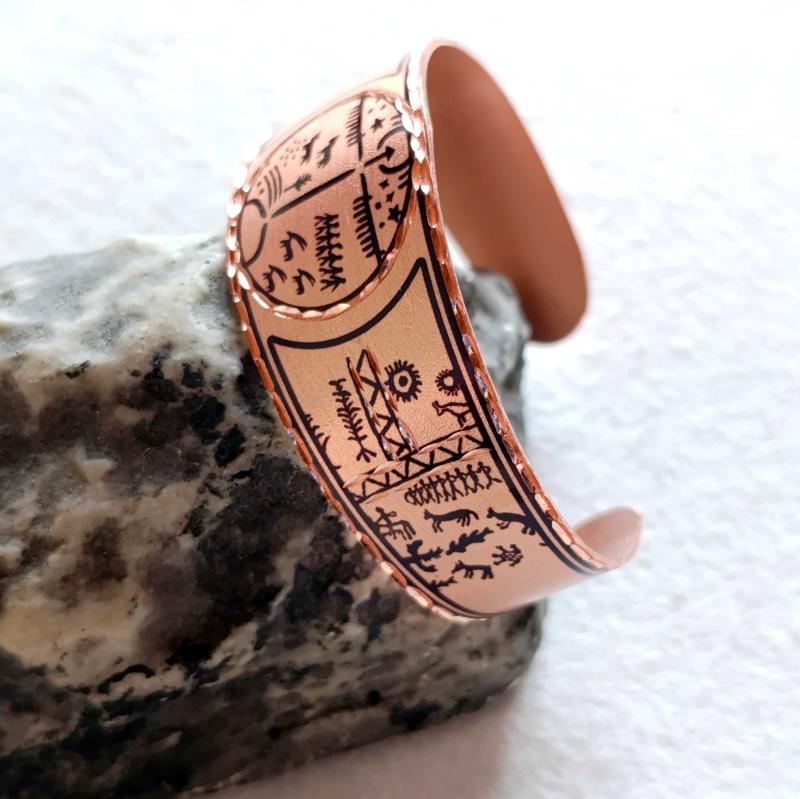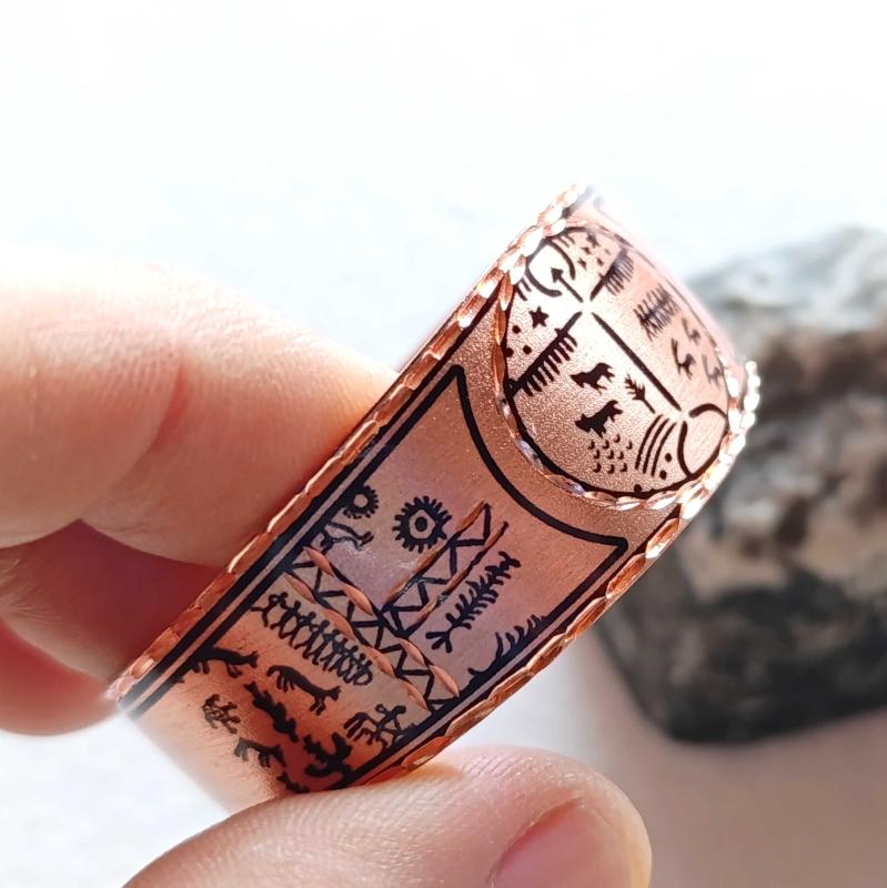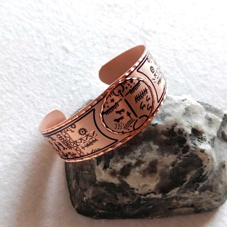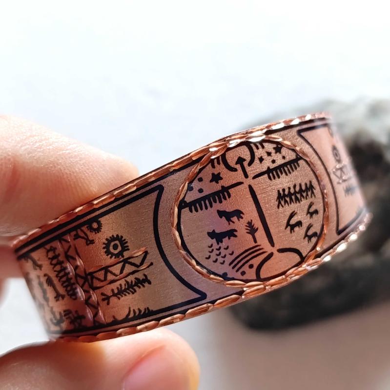 Kelepçe Bakır bilezik , Elyapımıdır, Özel tasarımımdır. Kam davulu ve şaman sembolleri
