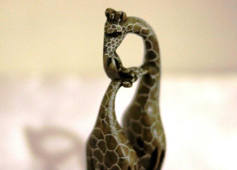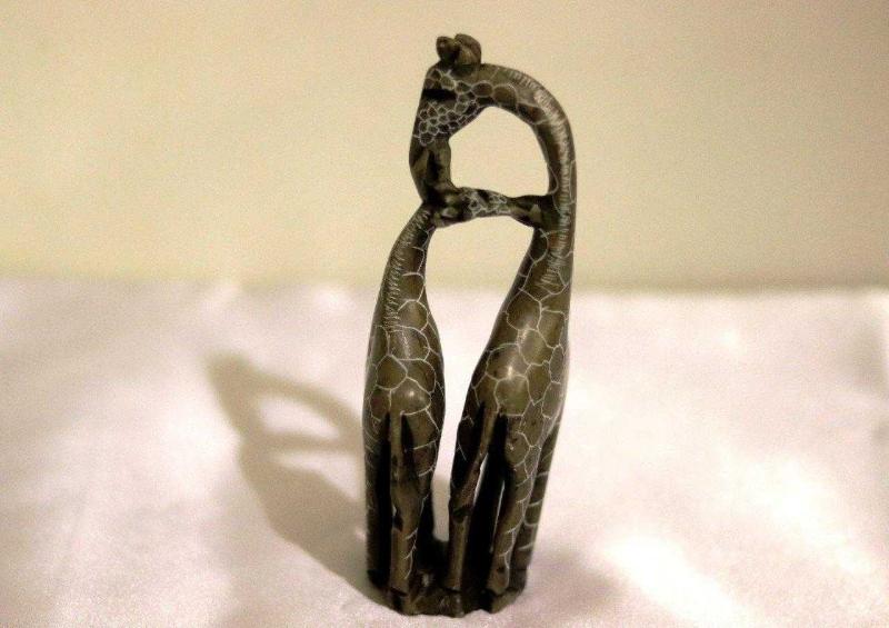 Kemik tozundan el boyaması zürafa ve yavrusu heykeli. Y: 16cm., 11 ay önce kitantik’te satışa sunulmuştur.