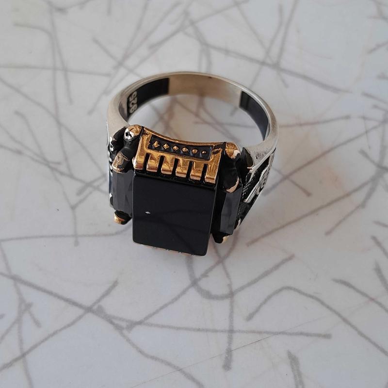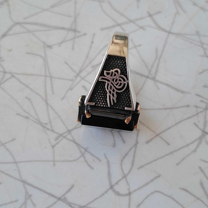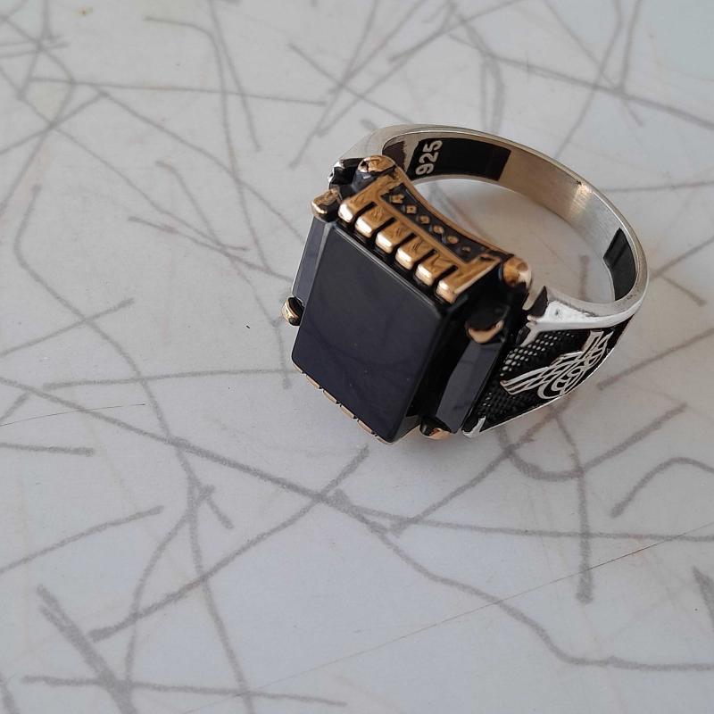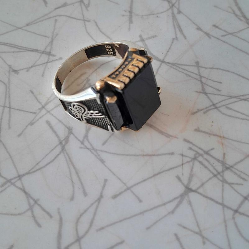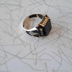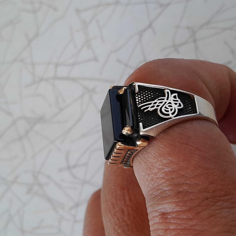 İki yanında Tuğra işleme olup Siyah Oniks taştır.12.1 gr olup 925 ayardır.