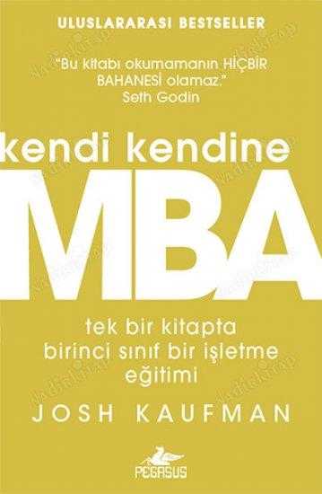 Kendi Kendine MBA - Tek Bir Kitapta Birinci Sınıf Bir İşletme Eğitimi, Josh Kaufman tarafından kaleme alınmıştır. Kitap 2020 yılında Pegasus tarafından yayınlanmıştır. 507 sayfadır. Kendi Kendine MBA - Tek Bir Kitapta Birinci Sınıf Bir İşletme Eğitimi adlı eser Türkçe dilindedir.