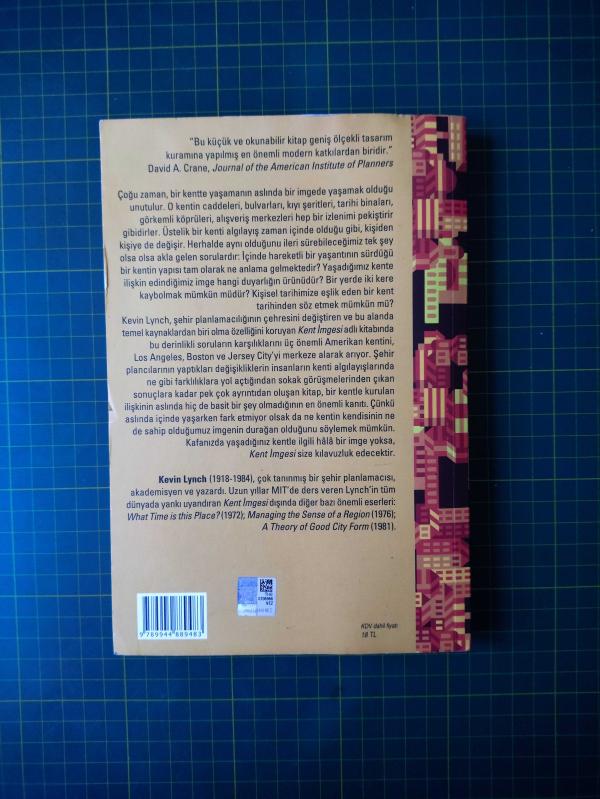 Kent İmgesi, Kevin Lynch tarafından kaleme alınmıştır. Kitap 2016 yılında Türkiye İş Bankası Yayınları tarafından [İstanbul] yayınlanmıştır. Bu baskının çevirisi İrem Başaran tarafından yapılmıştır. 215 sayfadır. Kent İmgesi adlı eser Türkçe dilindedir.