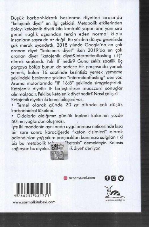 Ketojenik Diyet son şansınız olabilir, Özcan Yücel tarafından kaleme alınmıştır. Kitap 2023 yılında Sarmal Kitabevi tarafından [İstanbul] 9786257221771 ISBN kodu ile yayınlanmıştır. 196 sayfadır. Sayfa bilgisi 2. hamur olarak belirtilmiştir. Ketojenik Diyet son şansınız olabilir adlı eser Türkçe dilindedir.