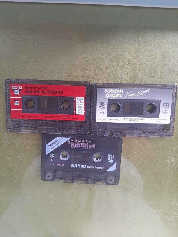 Yukarıdaki kasetler kutusuz ve kartoniyeri yoktur. Nalan Altınörs türküola kağıt baskılı , Burhan Çaçan kağıt baskı, Kibariye Bayşu müzik şeffaf baskıdır. LOT HALİNDE SATILIKTIR...