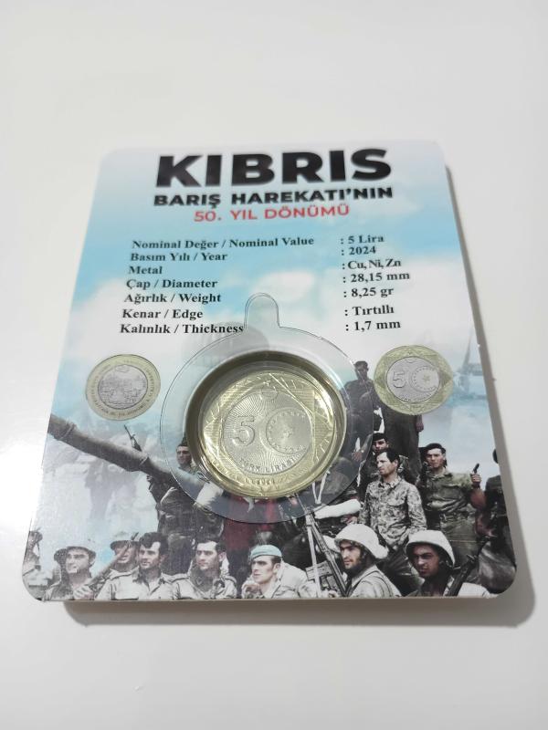 Kıbrıs Barış harekatinın 50. Yıl donumu hatıra 5 lira , çil kondisyonda