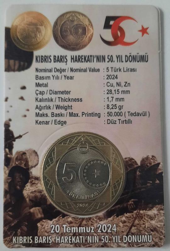 Kıbrıs Hatıra 5 TL - Kıbrıs Barış Harekâtı özel kapamasında, 5 gün önce satışa sunulmuştur.