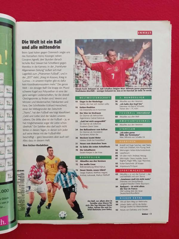 Kicker Sportmagazin Futbol Dergisi - Sayı: 54 - 29 Haziran 1998 - FİFA World Cup 1998 Fransa, ...