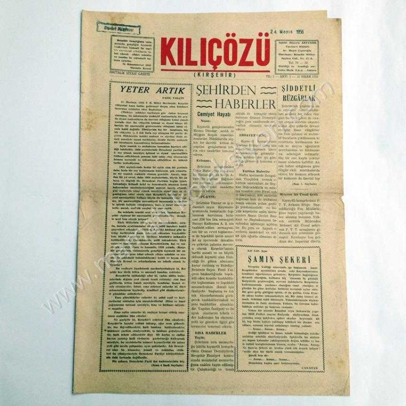 Kılıçözü gazetesi, 16 Nisan 1956, Sayı:3 Kırşehir, Kılıçözü adlı eser, Kitap > Süreli Yayınlar > Gazeteler > Türkiye > Mahalli kategorisinde İkinci El olarak satıştadır.