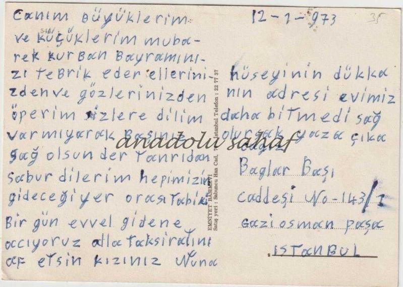 Arka yüzü yazılı