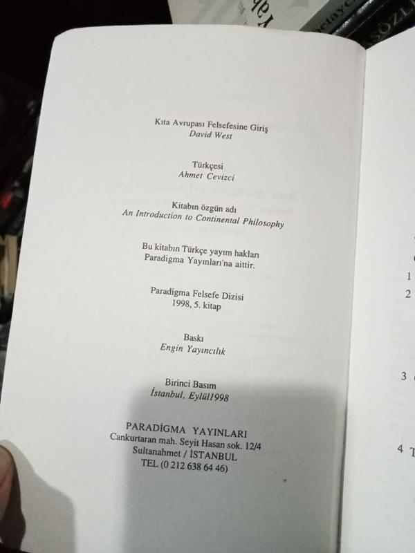 Kıta Avrupası Felsefesine Giriş, David West tarafından kaleme alınmıştır. Kitap 1998 yılında Paradigma Yayıncılık tarafından [İstanbul] yayınlanmıştır. 480 sayfadır. Kıta Avrupası Felsefesine Giriş adlı eser Türkçe dilindedir.