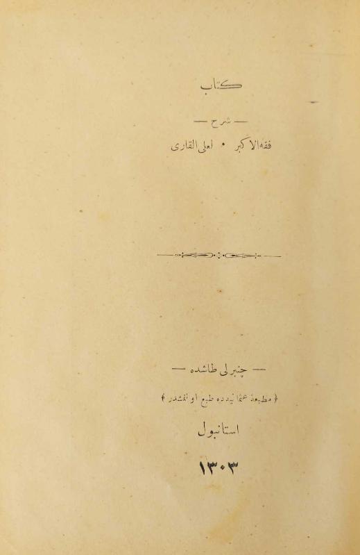Kitab-ı Şerh-i Fıkıh-ı Ekber li Aliyyü'l Kari / Fıkh-ı Ekber Şerhi (Allame Aliyyül Kari), İmam-ı Azam Numan b. Sabit Ebu Hanife tarafından kaleme alınmıştır. Eser Allame Ali el-Kari editörlüğünde hazırlanmıştır. Kitap 1303 yılında [İstanbul, Matbaa-i Osmaniye] yayınlanmıştır. Sayfa bilgisi 8+8+343+1 s. olarak belirtilmiştir. Kitab-ı Şerh-i Fıkıh-ı Ekber li Aliyyü'l Kari / Fıkh-ı Ekber Şerhi (Allame Aliyyül Kari) adlı eser Osmanlıca dilindedir.