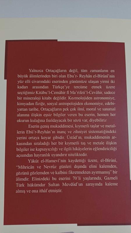Kıymetli Taşlar ve Metaller Kitabı / El-Cemahir Fi Ma'rifeti'l-Cevahir - Ebu Reyhan Muhammed Bin Ahmed El-Biruni (YENİ)