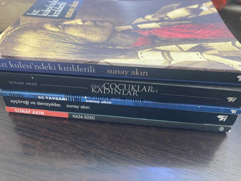 Kız kulesindeki kizilderili -imzalı- , önce çocuklar ve kadınlar - iki farklı tarihte çift imzalı- ayçöreği ve denizyıldızı, 62 tavşanı, kaza süsü, Sunay akın tarafından kaleme alınmıştır. Kız kulesindeki kizilderili -imzalı- , önce çocuklar ve kadınlar - iki farklı tarihte çift imzalı- ayçöreği ve denizyıldızı, 62 tavşanı, kaza süsü adlı eser Türkçe dilindedir.