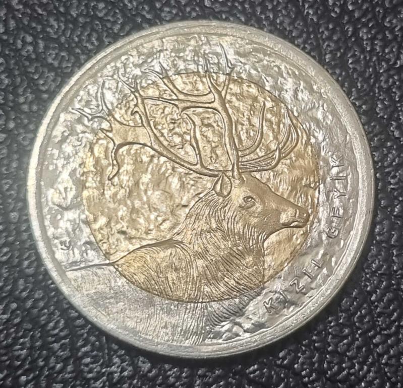 Darphane tarafından üretilen Türkiyde görülen hayvan türleri serisi 2012 yılı kızıl geyik hatıra parası. Kondisyon çil olup hatıra paranın çapı 27.5 mm dir.