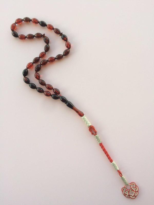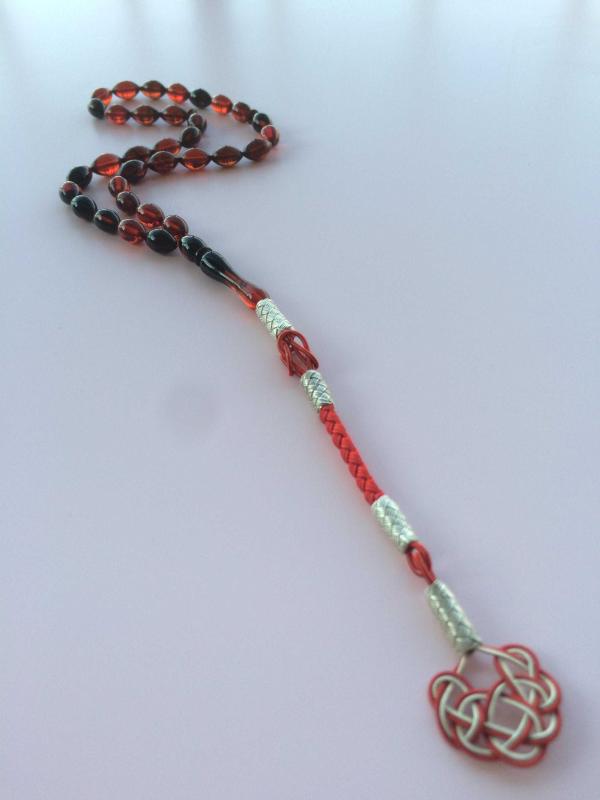 1000ayar Gümüş Kazazi püskül ile Kızıl Kahve Ateş Kehribarı usta işi tespih.
