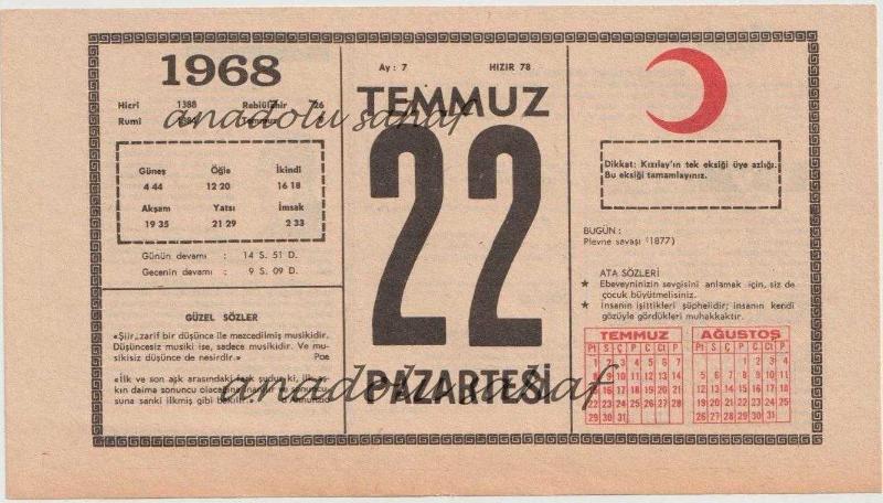 Kızılay Takvim Yaprağı - 22 Temmuz 1968, en son 6 ay önce güncellenmiştir.