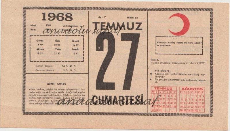 Kızılay Takvim Yaprağı - 27 Temmuz 1968, en son 6 ay önce güncellenmiştir.