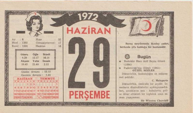 Kızılay Takvim Yaprağı - 29 Haziran 1972, 5 yıl önce satışa sunulmuştur.