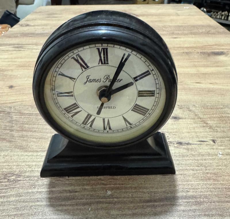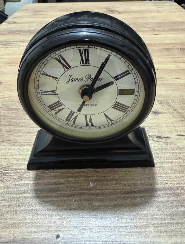 Klasik Metal siyah Roma Rakamlı Pilli Masa Saati James Parker Sheffield Çalışır durumda