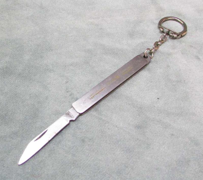 KOLEKSİYONLUK, ÜZERİ ÇEŞİTLİ YAZILI EŞANTİYON FRANSIZ ANAHTARLIKLI ÇELİK ÇAKI, SAĞLAM VE TERTEMİZ, ÇAKI KAPALI UZUNLUĞU 6,5cm,ASKILI UZUNLUĞU 11cm, ÇAKININ AÇIK UZUNLUĞU 11,5cm