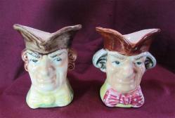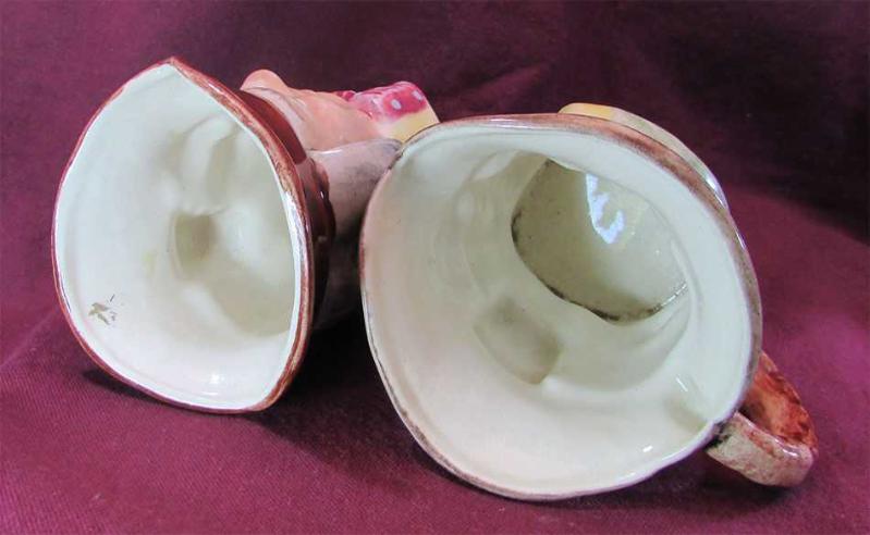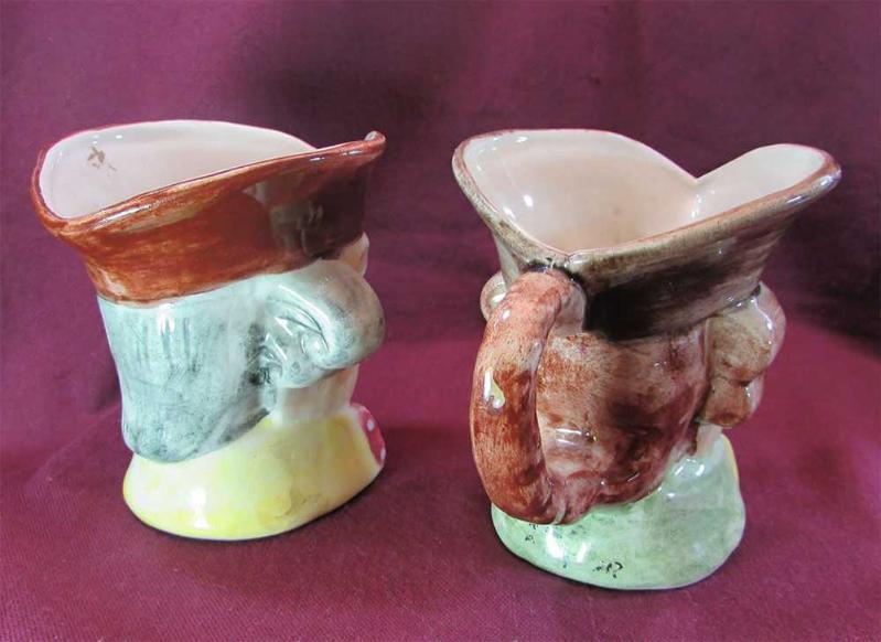 KOLEKSİYONLUK Toby Jug KLASİK İNGİLİZ TİPLERİN,FİGÜRATİF OLARAK BAŞ KISIMLARININ,ÖZEL EL İŞÇİLİĞİ İLE SERAMİKTEN YAPILMIŞ VE SIR ALTI BOYANMIŞ KUPALAR BİRİ SAPLI,DİĞERİ SAPSIZDIR BÜYÜK İHTİMAL İNGİLİZ MENŞEİLİ ÜRÜNLER ÜRÜNLER BİRAZ TOZLU OLARAK RESİMLENMİŞ, TERTEMİZ VE SAĞLAMDIR KIRIK ATIK YOKTUR GENİŞLİĞİ 7-8cm,YÜKSEKLİKLERİ 9cm