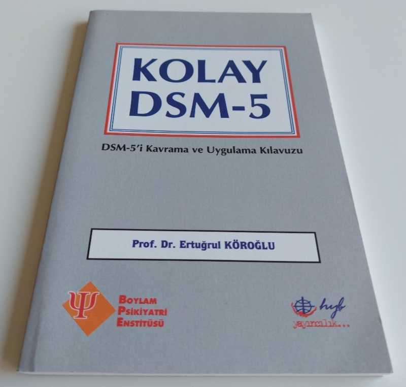 Kolay DSM - 5 / DSM - 5'i Kavrama ve Uygulama Kılavuzu, Ertuğrul Köroğlu tarafından kaleme alınmıştır. Kitap 2016 yılında yayınlanmıştır. Kolay DSM - 5 / DSM - 5'i Kavrama ve Uygulama Kılavuzu adlı eser Türkçe dilindedir.