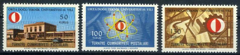 Orta Doğu Teknik Üniversitesinin 10cu Kuruluş yılı anısına PTT Genel Müdürlüğü 3 Pulluk Anı serisini kullanıma çıkarmıştır.