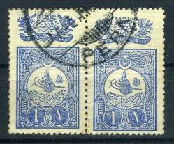 1908 Meşrutiyetin ilanında çıkarılan 1 Kuruşluk Pul.Damgalı çift üzerinde PERA Damgası,İstiklal Caddesi