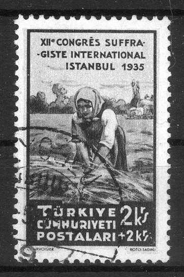 1935 Yılında Uluslararası Kadınlar Kongresi İstanbul'da Yıldız Köşkünde yapılmıştır.Serinin 2,5 Kuruşluk Pulu Gerçek Posta Damgası ile.