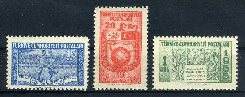 1955 Yılında İtalya/ROMA'da Yapılan Uluslararası Askeri Futbol Şampiyonası için 3 Pulluk Anı Serisi Kullanıma Çıkarılmıştır.