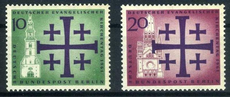 2.Dünya Savaşından Sonra BERLİN Doğu Almanya içinde kaldı.1990 Yılına kadar Federal Almanya Berlin için ayrı pul çıkardıi. 2 Pulluk Damgasız Tam Seri.1961 Yılında çıkarıldı.