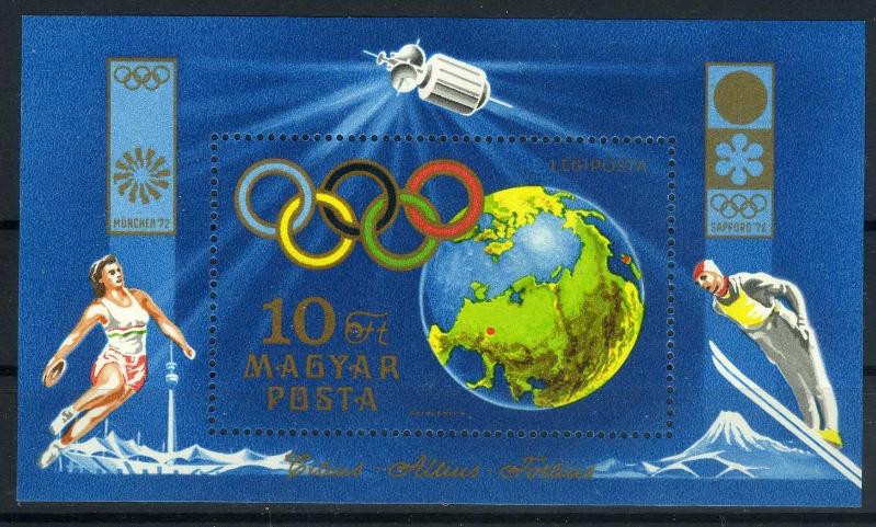 1972 Yılın da Münih Almanya-Yaz Olimpiyatları, Japonya Saporro'da Kış Olimpiyatları için MACARİSTAN PTT İdaresi tarafından kullanıma çıkarılan Damgasız tam seri Özel Blok.