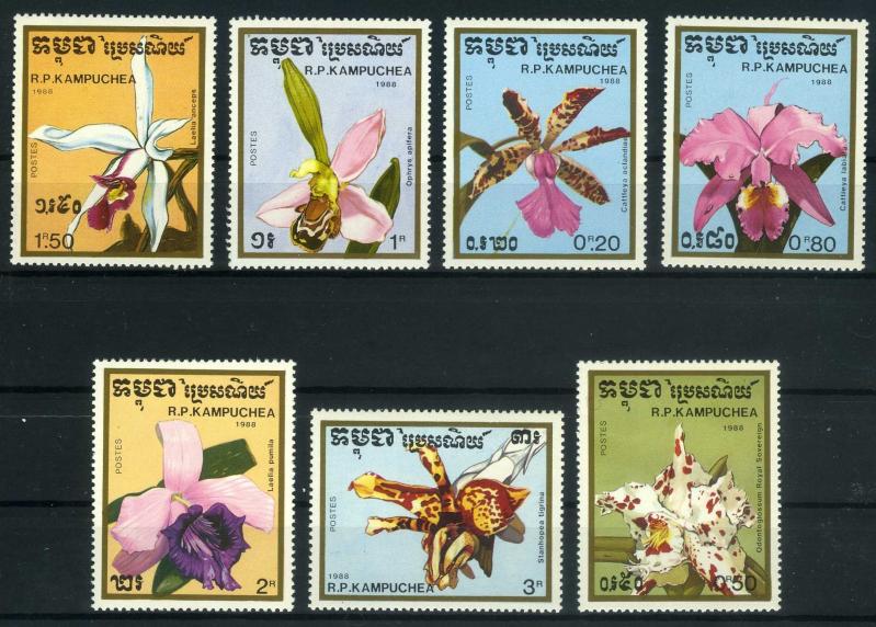 Bir Uzak Doğu Ülkesi olan KAMBOÇYA Halk Cumhuriyeti PTT İdaresi 7 Pulluk Damgasız tam Seriyi Kullanıma Çıkarmıştır, Pullar Çiçekler temalıdır.