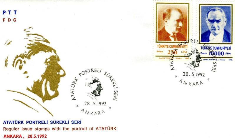 Koleksiyon Pulları, 1992 Atatürk Portreli Sürekli Seri, FDC (Birinci Gün Zarfı), bir ay önce satışa sunulmuştur.
