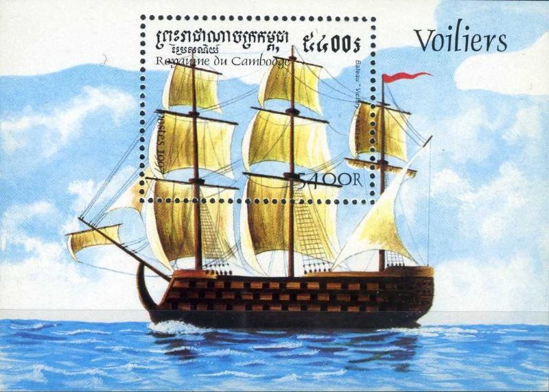 1997 Yılında Uzak Doğu Ülkesi olan KAMBOÇYA Krallığı PTT İdaresi Damgasız tam seri, Yelkenli Gemi Konulu bir adet Özel Blok'u kullanıma çıkarmıştır