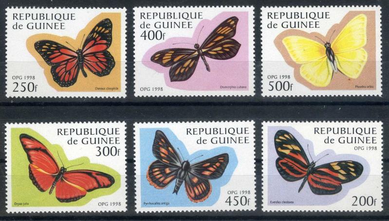 1998 Yılında Afrika Gine Cumhuriyeti PTT İdaresi 6 Pulluk Damgasız Kelebekler Konulu Anı Serisisini Kullanıma çıkarmıştır.