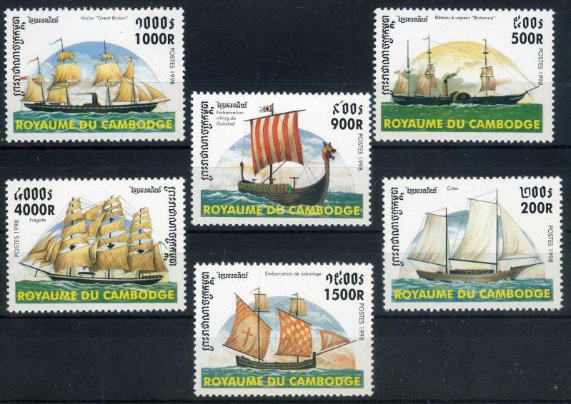 1998 Yılında Uzak Doğu Ülkesi olan Kamboçya Krallığı PTT İdaresi 6 Pulluk Klasik Yelkenli Gemilerden oluşan Damgasız Tam Seri kullanıma çıkarmıştır