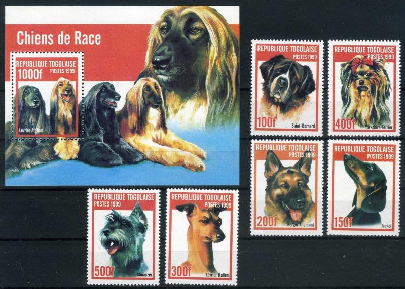Afrika TOGO Cumhuriyet 6 Pul Damgasız Tam Seri + 1 Adet Özel Blok.Cins Köpek Konulu ve Özel Blok.