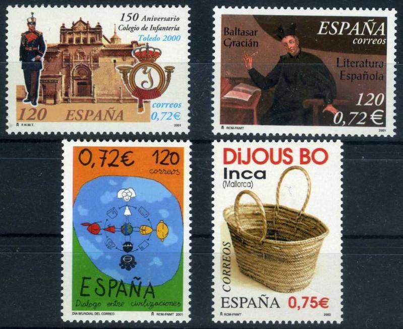 2001 ve 2002 yıllarında İspanya'da çıkan Tek Pul Tam Seriler. Damgasız.